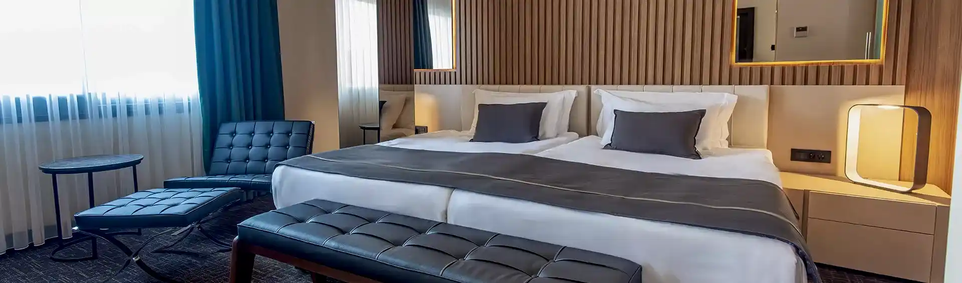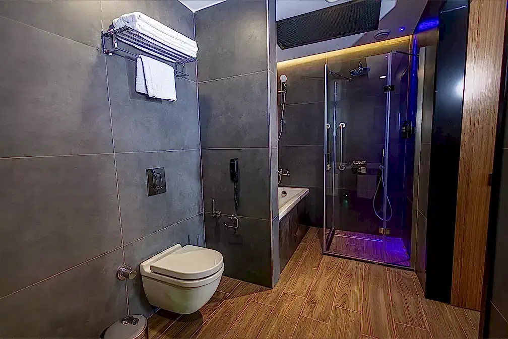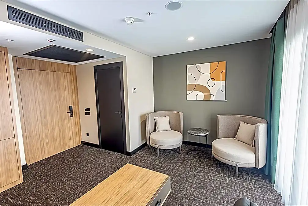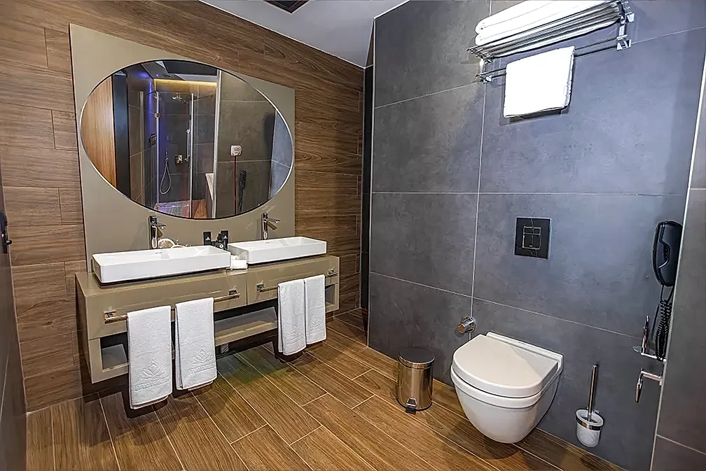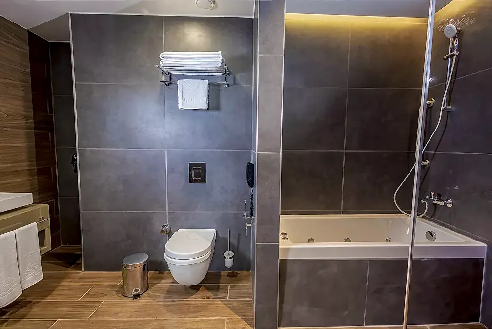 Our Junior Suite rooms, which are carefully furnished for your comfort with modern furniture and where you will receive vip service with jacuzzi and sauna in the bathroom, are waiting you for a unique accommodation experience.