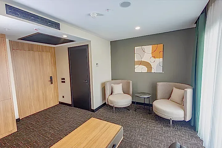 Our magnificent Junior Suite Room of 45 square meters is equipped with comfort and luxury. This special room, decorated with carefully selected details in every corner, aims to provide an unforgettable accommodation experience to our guests.