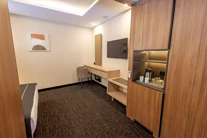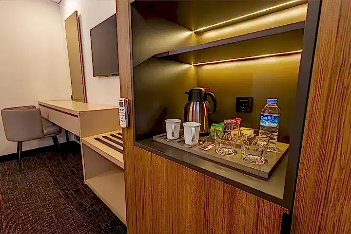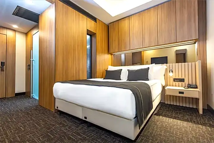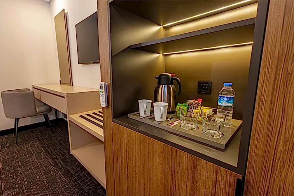 20 metrekarelik engelli dostu odamız, konfor ve zarafetin mükemmel uyumunu sunmaktadır. Modern tasarımı ve işlevsel düzeni ile dikkat çeken bu özel oda, misafirlerimizin tüm ihtiyaçlarını karşılamak üzere özenle donatılmıştır. Özel olarak tasarlanmış yatak odası alanı, mobilyaları, banyo alanı, engelli misafirlerimizin konforunu maksimum seviyede sağlamak üzere düzenlenmiştir.